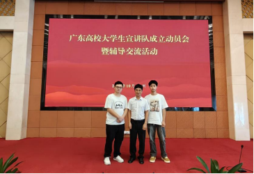 10月17日,广东省高校大学生宣讲队成立动员会暨辅导交流活动在广州举行。本次宣讲队由省委宣传部统一部署,从全省高校择优选拔100名大学生宣讲员组成。校团委副书记、yl6809永利集团形势与政策教研室教师党支部书记李宏担任领队,我院“求是之声”宣讲团成员杨帆、许向阳作为宣讲员参会并完成现场展示。
