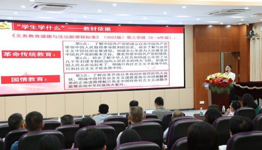就如何在小学中开展思政课的问题,大岭山镇第二小学教师汤雪欣结合《义务教育道德与法治新课程标准》,对学生思政课的课程设计及实施进行现场说课。