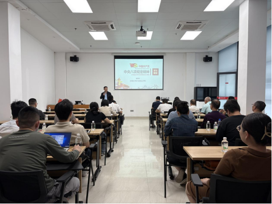 学院党委副书记谢霄男随后作《深入解读中央八项规定精神》专题辅导报告。他系统梳理了中央八项规定出台的历史背景与演进脉络,通过对比教育系统违反中央八项规定精神典型案例,细致剖析了“改进调查研究”“精简会议活动”等八项要求的核心要义,特别强调要警惕“吃喝风”等隐形变异问题,要求教职工严守师德师风红线,杜绝“节日腐败”“学术掮客”等新型违纪现象。