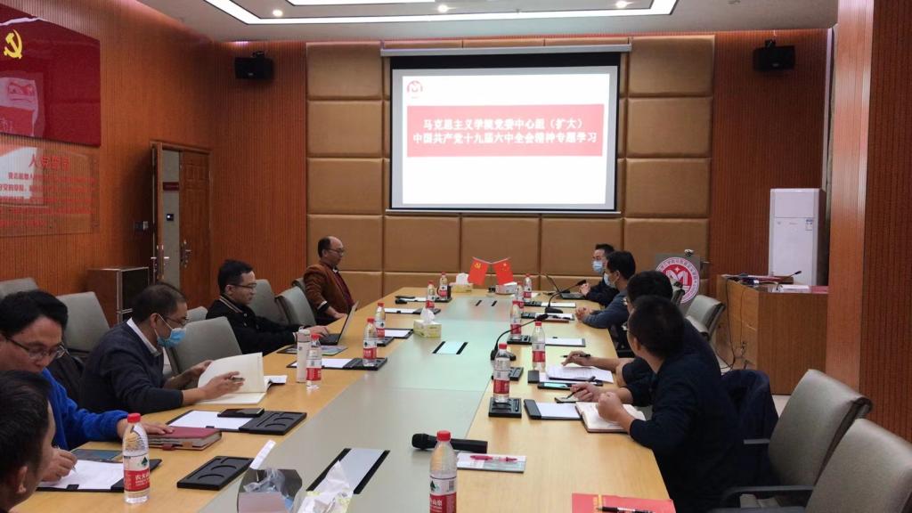 11月14日晚,yl6809永利集团党委中心组(扩大)开展中国共产党第十九届六中全会精神专题学习。党委书记、执行院长唐元松作动员讲话并领读《中国共产党第十九届中央委员会第六次全体会议公报》,各教研室主任做学习体会分享。