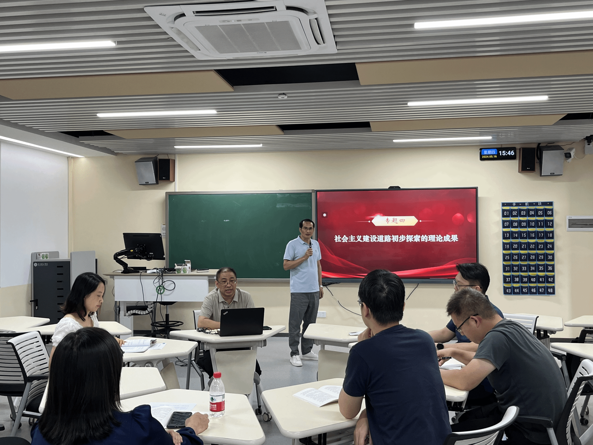 5月16日下午,毛泽东思想和中国特色社会主义理论体系概论在6D-304[智慧教室]教师党支部开展政治理论学习暨教研室本学期第三次集体备课会。本次会议由党支部书记、教研室主任李仕波教授主持,教研室全体教师、支部成员参会。会议流程分为政治理论学习、集体备课两个阶段。