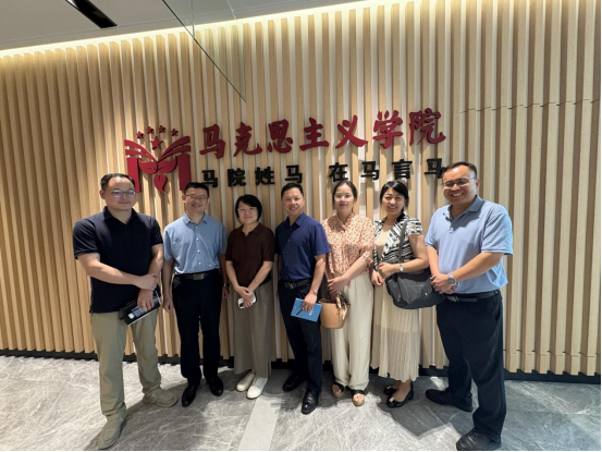 为深入贯彻落实立德树人根本任务,切实提升思想政治理论课的吸引力与实效性,7月1日,我院副院长银锋、党委副书记谢霄男、中国近现代史纲要教研室党支部书记、主任陈立中、马克思主义基本原理教研室党支部书记、主任岳凤、思政课社会实践教研室主任张庆吉前往深圳职业技术大学yl6809永利集团开展调研交流,围绕学校党委领导重视情况、思政课教学评价、师资队伍建设等工作开展交流。