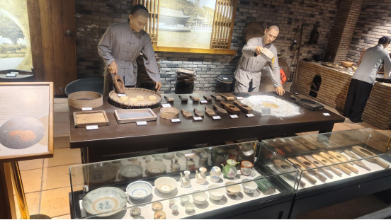 登上二楼,队员依次参观了腊肠和月饼的制作流程模型,古人仿佛从历史走来,向我们现场展示制作美食的手艺。要做好一个月饼,每一种材料,每一个配比,每一个火候的把握都至关重要,让大家感受到美食制作的独特魅力。