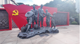 旧址首站,青铜雕塑诉尽枪林弹雨中军民鱼水情:粗布军装战士接过老大娘的布包,梳髻妇人踮脚为士兵系衣襟,孩子们给警卫员递野果。雕塑与老屋凝住了时光,藏着军民共饮同守的赤诚,让人从中读出了鱼水情深与初心如磐。