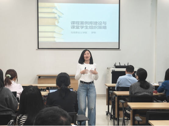 本期工作坊由深受学生喜爱、学生评教常年稳居学院前列的罗艳老师主讲。她以“课程案例库建设与课堂学生组织策略”为主题,立足“Z世代”大学生认知特征与理工科院校学生实际,系统分享了富有原创性与实操性的教学创新成果:一是通过构建包含29个圈层文化的案例库,推动教学内容与学生兴趣、专业语境精准对接;二是提出“个案多样—个案温度—个案转化—个案落地”四维开发模型,差异化设计文科生的情感叙事案例与理工生的逻辑推理案例;三是创新提出“调动学生积极性”五步法,涵盖听觉吸引力营造、趣味教学法嵌入、故事化作业设计及弹性管理机制,辅以“三幕结构”叙事模型、“图片优势效应”等数字化表达工具,让思政课真正“听得进、记得住、用得上”。其经验已在粤台智能制造班、法学班等多类专业课堂中验证有效,学生抬头率、互动率、作业完成质量显著提升。