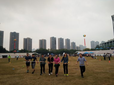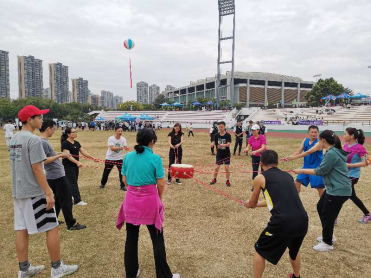 今年运动会的教工集体项目分为男女4*100接力赛和集体趣味项目,参加男子4*100的教师分别是郭奕鹏、漆志平、冯斌、梁灿四位老师,参加女子4*100的教师分别是谢敏、罗艳、唐晨诗、黄海宇。接力赛中,各位老师奋勇拼搏,不服输、不放弃。在比赛中,由于平时教学科研工作繁忙、疏于运动,谢敏老师和梁灿老师都扭到了脚,但仍全力以赴,凭着顽强的毅力跑完了全程。在集体趣味项目中,各位老师踊跃参加,在同心鼓击球和长杆跑中取得了较好的成绩。