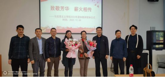 会上,学院党委书记、院长刘健表示,作为同事,我与两位荣休教师携手并进、奋斗拼搏,结下了深厚的感情,对两位荣休教师几十年如一日的辛勤工作和付出表达了感谢,并送出了美好的祝福。两位老师对待工作严谨科学、一丝不苟的可贵品质,要代代传承,希望两位老师继续关注学院发展,积极建言献策,一如既往地支持学院的各项工作。同时,也祝愿两位老师在新的阶段,身体健康、万事顺意!概论教研室的两位青年教师梁灿和马冀群博士给周玉华和史琳老师献上了鲜花。